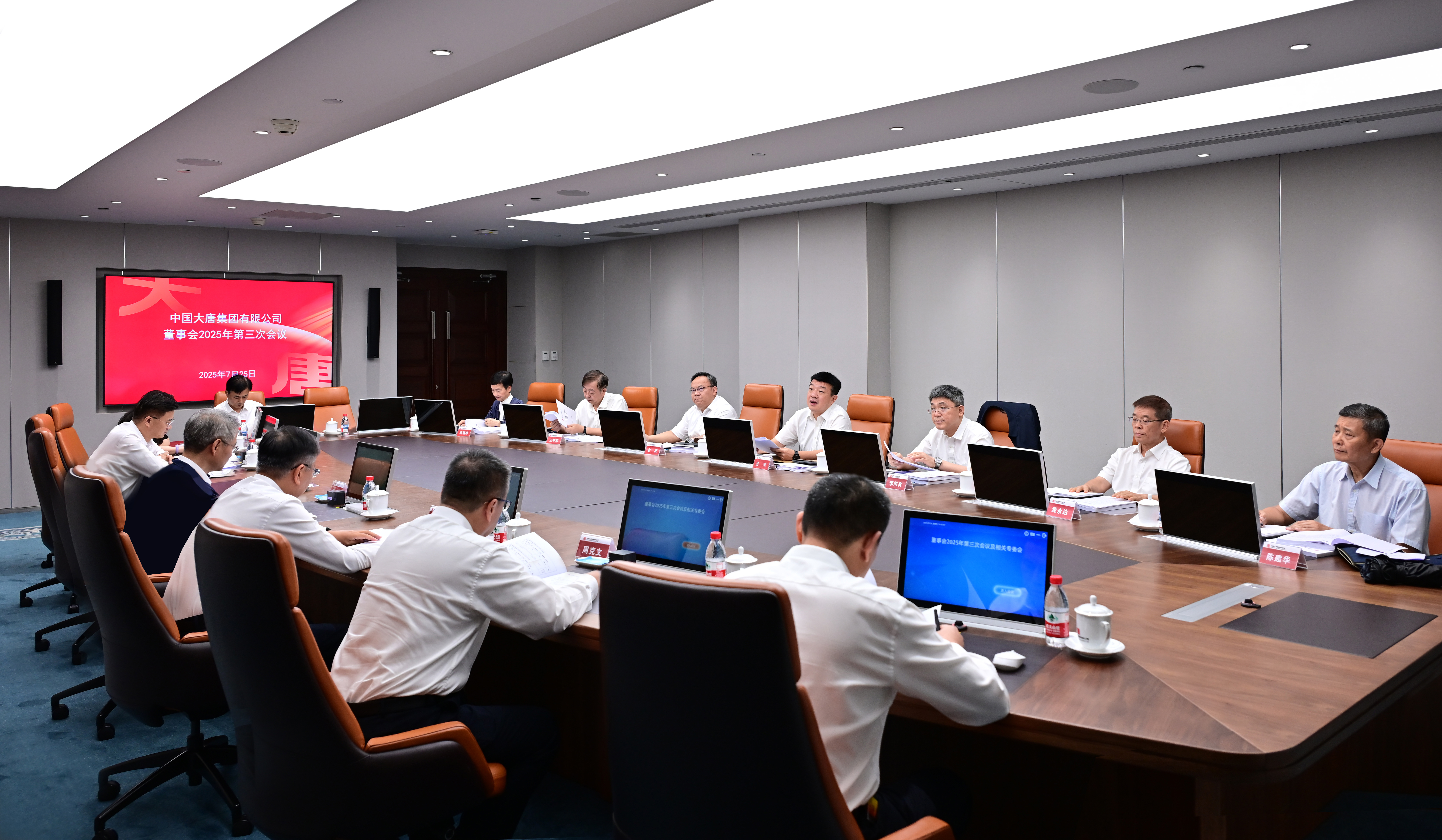 本網(wǎng)訊 7月25日,中國大唐集團有限公司召開董事會2025年第三次會議。集團公司董事長、黨組書記呂軍主持會議并講話,董事、總經(jīng)理、黨組副書記李向良,董事、黨組副書記余波,外部董事黃永達、王守東、陳建華、段湘暉參加會議。