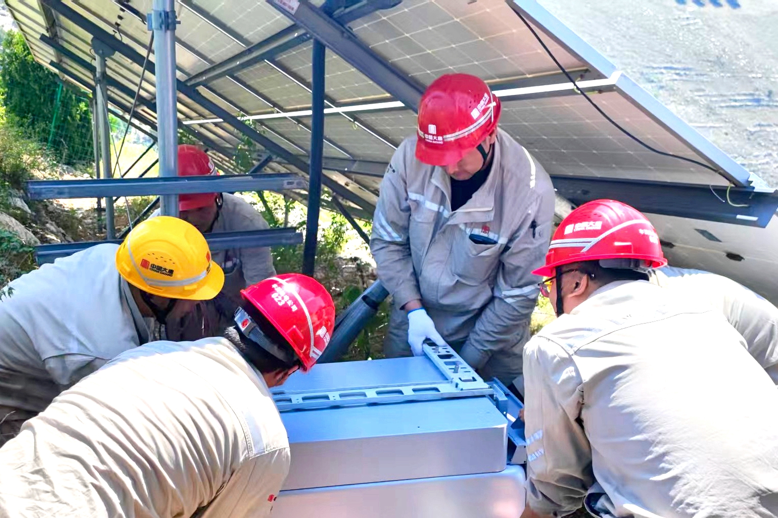 烈日當(dāng)頭時(shí),滿頭大汗的眾人終于把設(shè)備托舉到指定地點(diǎn)。大家顧不上喘口氣,便立即投入新的戰(zhàn)斗。
