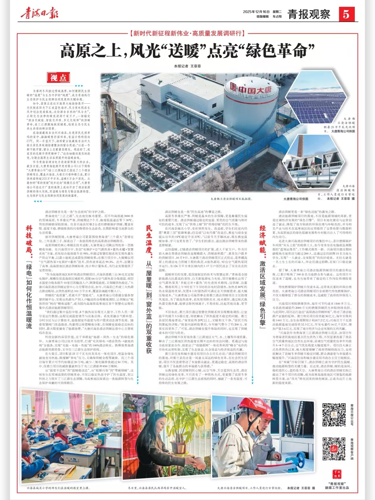 [青海日報]2025-12-15,高原之上,風光”送暖”點亮”綠色革命”