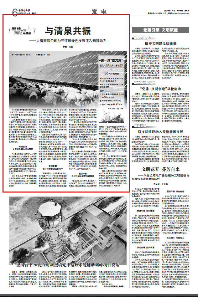 [中國(guó)電力報(bào)]與清泉共振 ——大唐青海公司為三江源綠色發(fā)展注入澎湃動(dòng)力